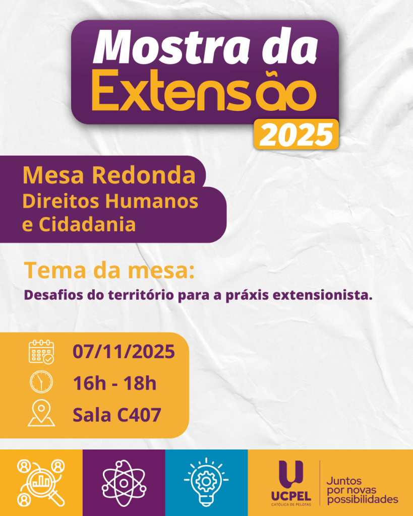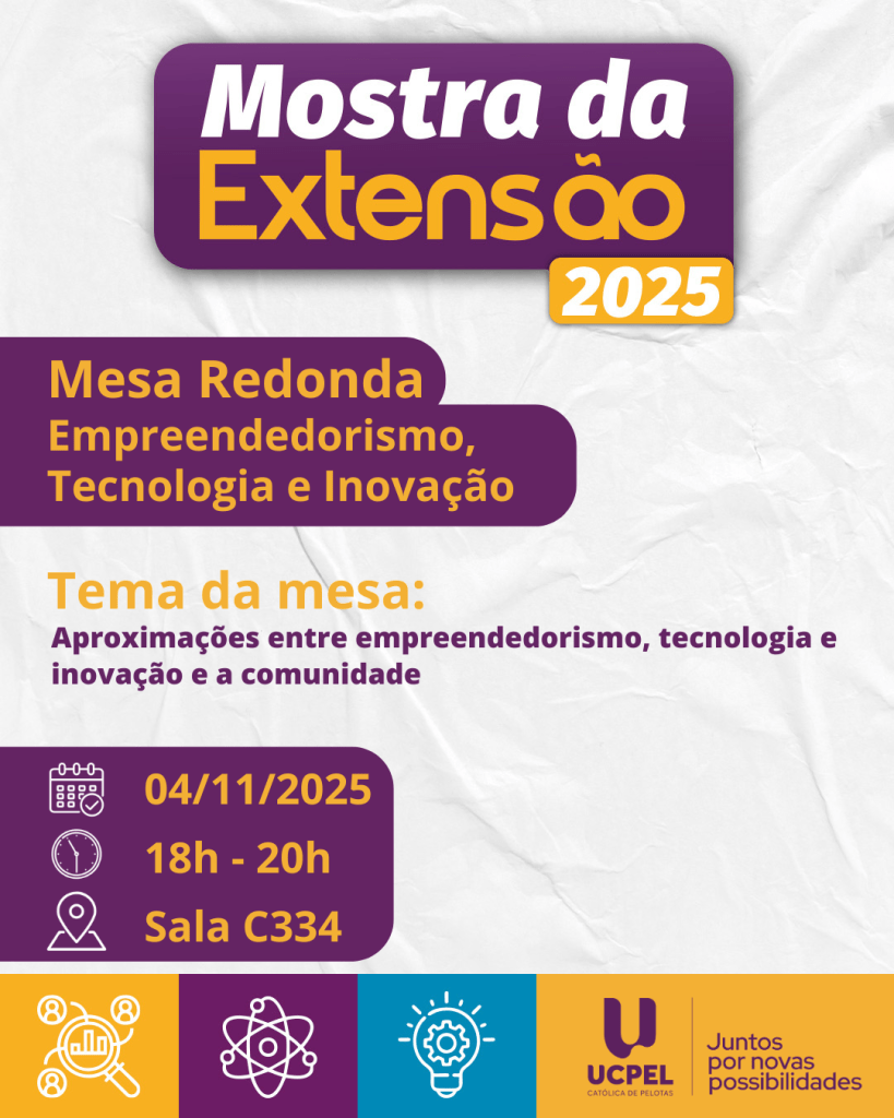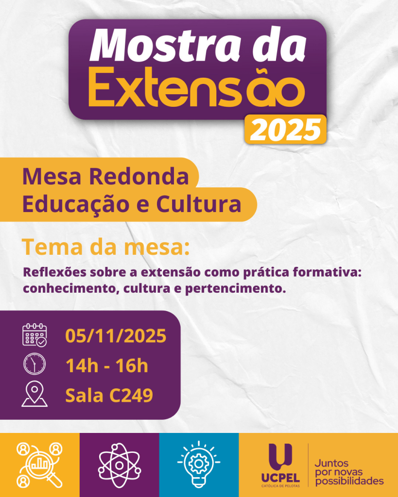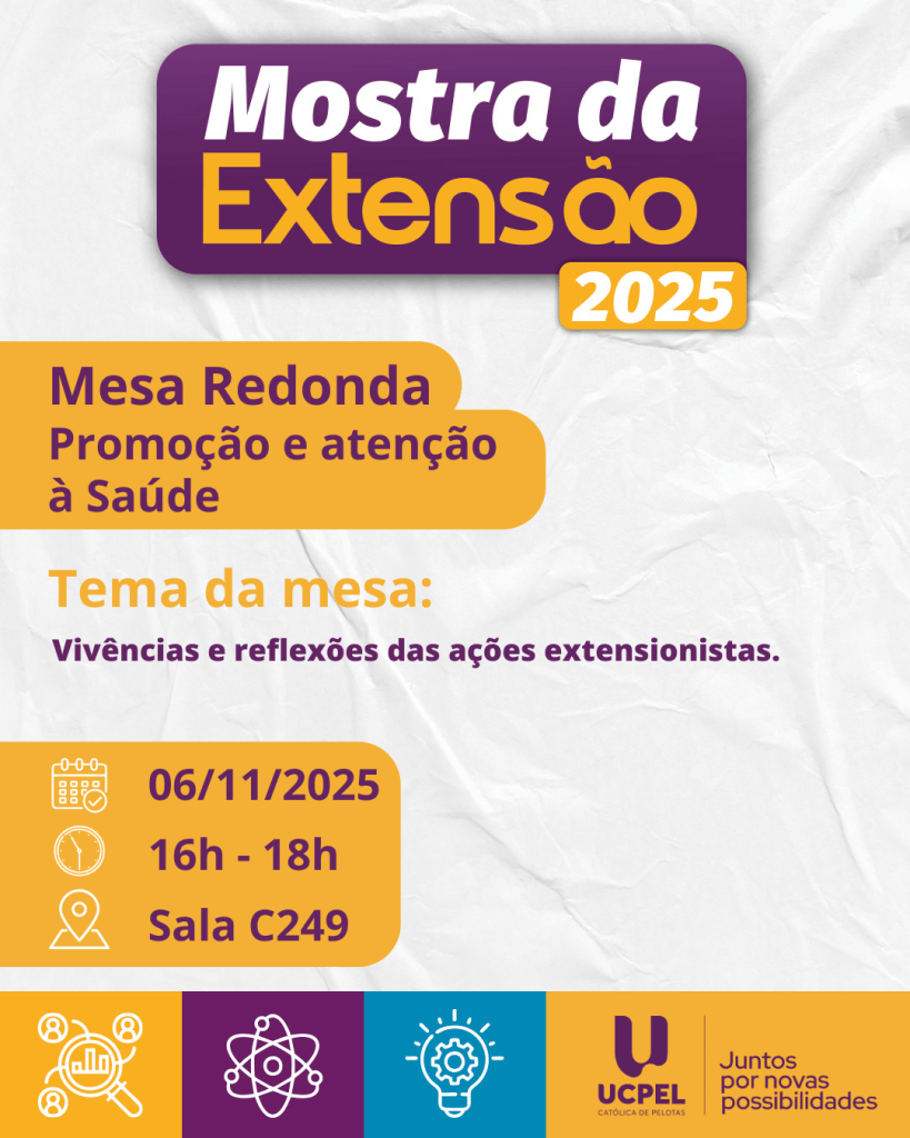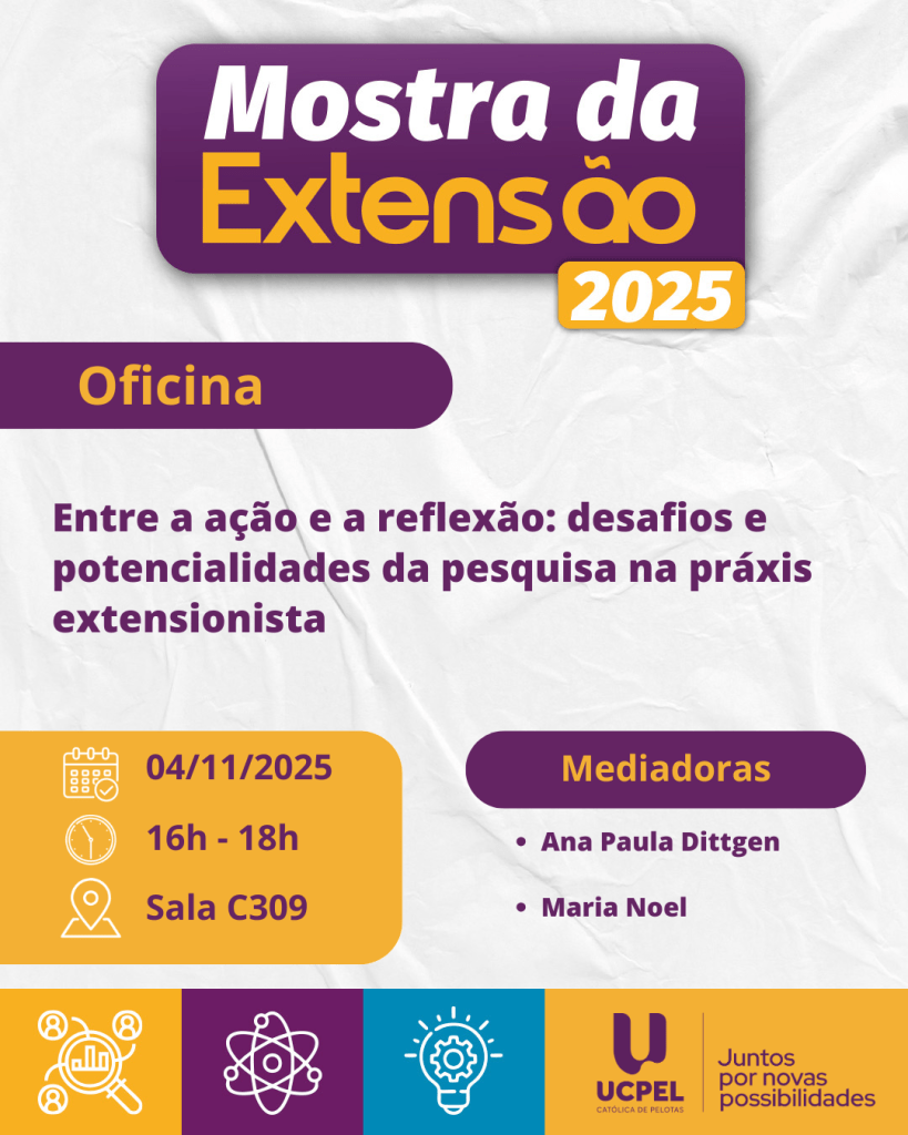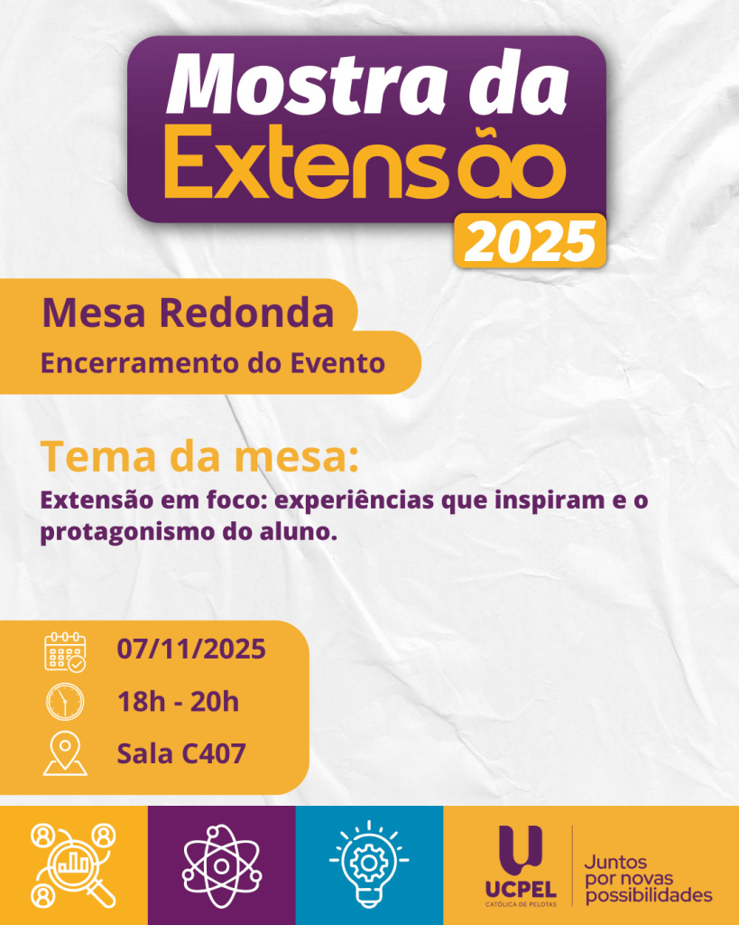A Mostra da Extensão 2025 da UCPel tem o intuito de proporcionar a troca de conhecimentos e de experiências desenvolvidas na UCPEL a partir dos seus Programas/Projetos de extensão, dos Projetos de Vivências Acadêmicas e da Curricularização da extensão.